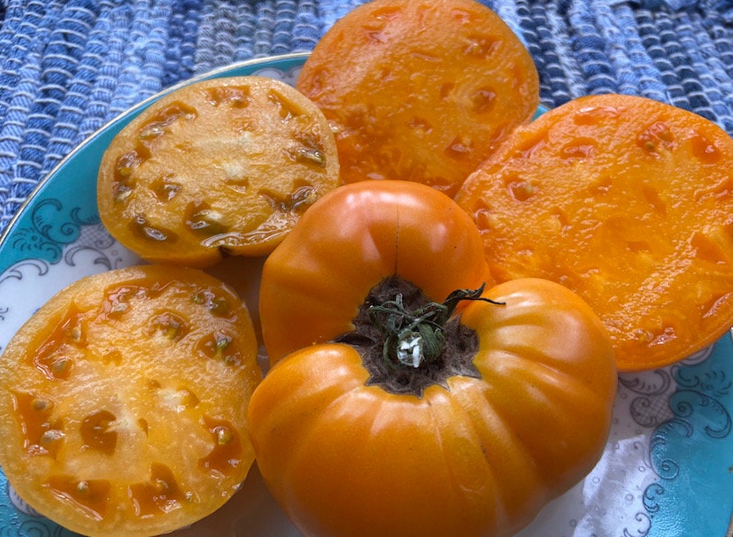 Low acid, Golden Orange. Very Productive. Indeterminate 6-9oz size.